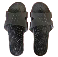足療鞋:用于做足底療法,刺激足底相應 穴位,以調理身體健康。鞋上設有多個磁點, 能更有效配合治療。使用時,用二芯線將鞋子 連接到儀器上,脫掉鞋襪,光腳踏在足療鞋上,操作儀器即可。